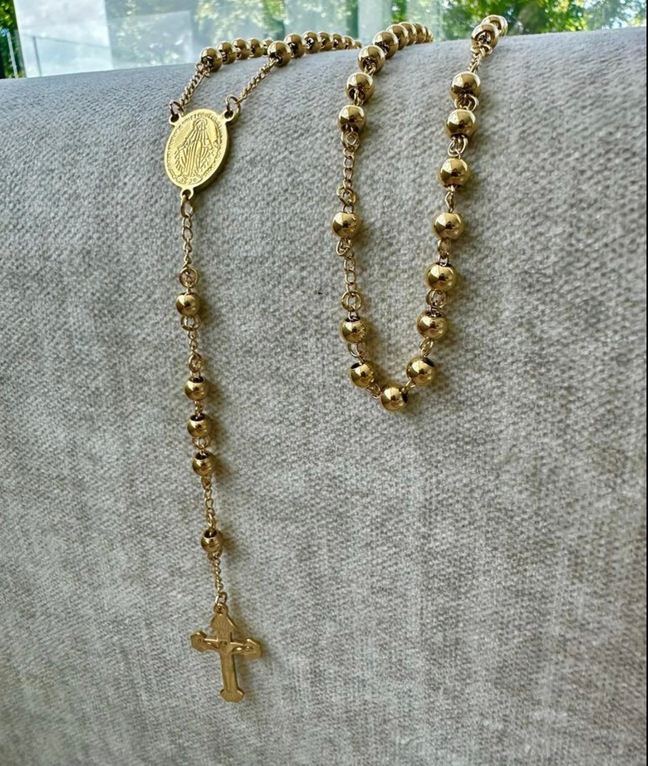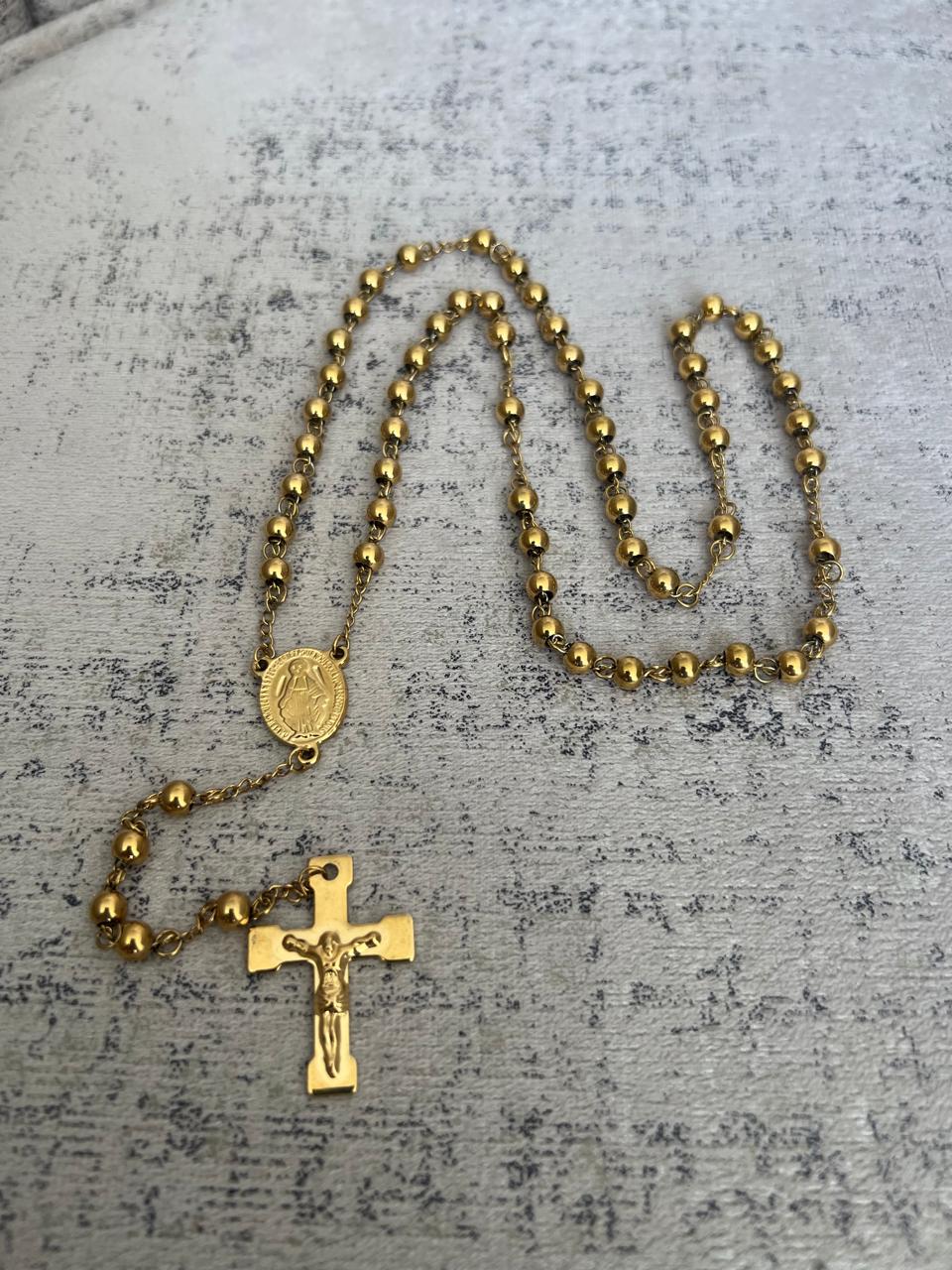Prepárate para deslumbrar con nuestra camándula de oro de 18k, una pieza que irradia poder y estilo.